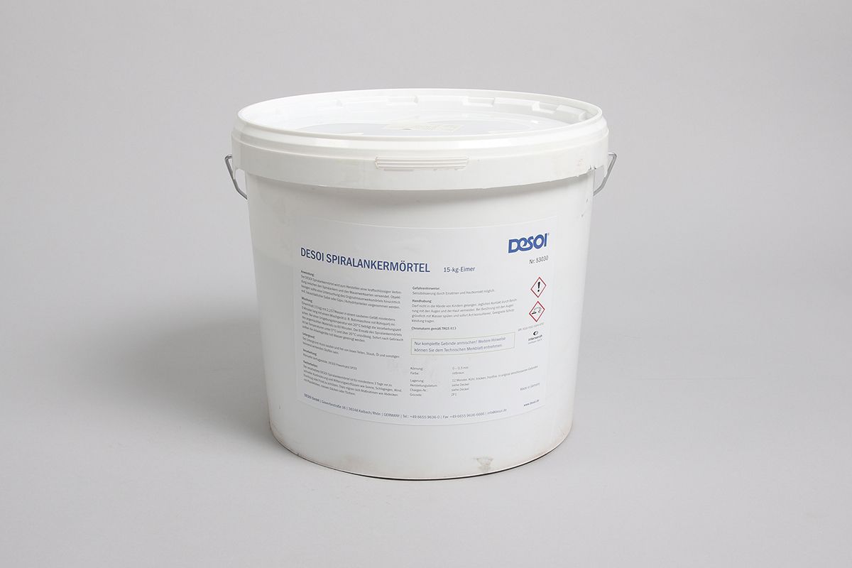 Der DESOI Spiralankermörtel wird zum Herstellen einer kraftschlüssigen Verbindung zwischen den Spiralankern und dem Mauerwerk verwendet. Objektbezogen sollte eine Untersuchung des Originalmauerwerkmörtels hinsichtlich evtl. bauschädlicher Salze oder Gips-/Anhydritanteilen vorgenommen werden. Für gipshaltiges Mauerwerk ist der DESOI Spiralankermörtel nicht geeignet. Ein weiterer Einsatz des Spiralankermörtels ist die nachträgliche Verankerung von Vormauerschalen und Natursteinverkleidungen mit der Tragschale. (Anbindung von nicht tragenden Mauerwerksschalen an das tragende Mauerwerk mit Spiralankern!) Weiterhin kann der Spiralankermörtel zum Sichern und Stabilisieren von Mauerwerksteilen eingesetzt werden.
