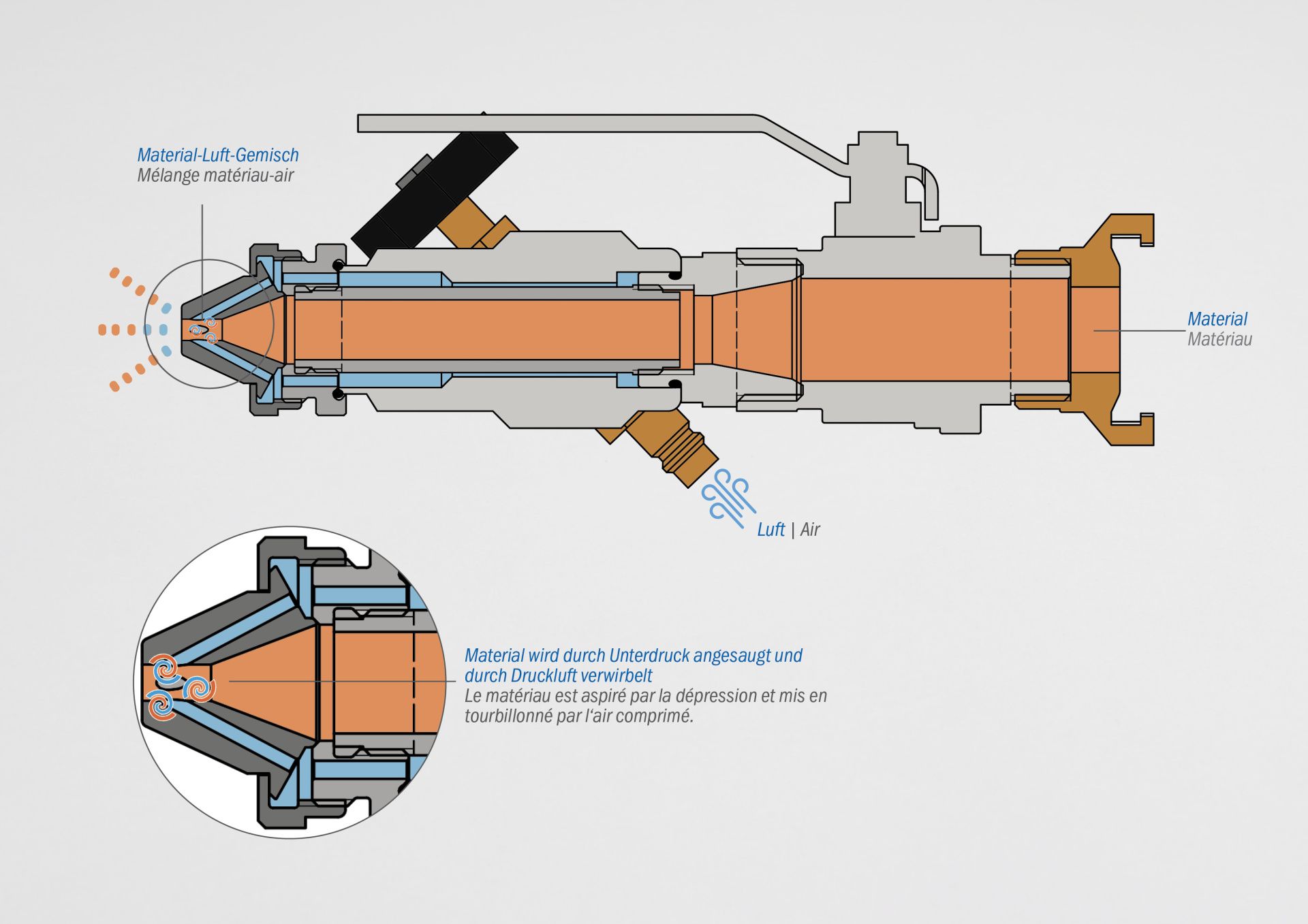 De manière contrôlée, la pompe à vis DESOI PowerInject SP20 débite le matériau (coulis d’étanchéité) à la tête de tuyère / la lance-pulvérisateur. Le débit contrôlé assure une distribution égale du matériau sur la surface à protéger, et, par cela, une étanchéité fiable. Par rapport aux méthodes d'étanchéité traditionnelles telles que les membranes bitumineuses ou les films d'étanchéité, la méthode de pulvérisation offre une solution efficace en termes de temps et de matériaux, en particulier pour les géométries complexes telles que les angles, les angles, les bords et les surface irrégulières.L’ensemble de l‘équipement et la méthode permet une application professionnelle et efficace, qui protège durablement le support contre l'humidité. En option, le matériau requis peut être fourni selon les besoins.